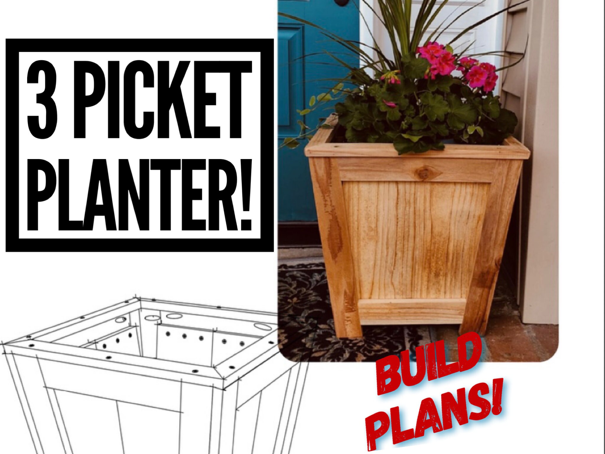 Farmhouse Three Picket Box Planter Plans Fence Picket Planter Etsy